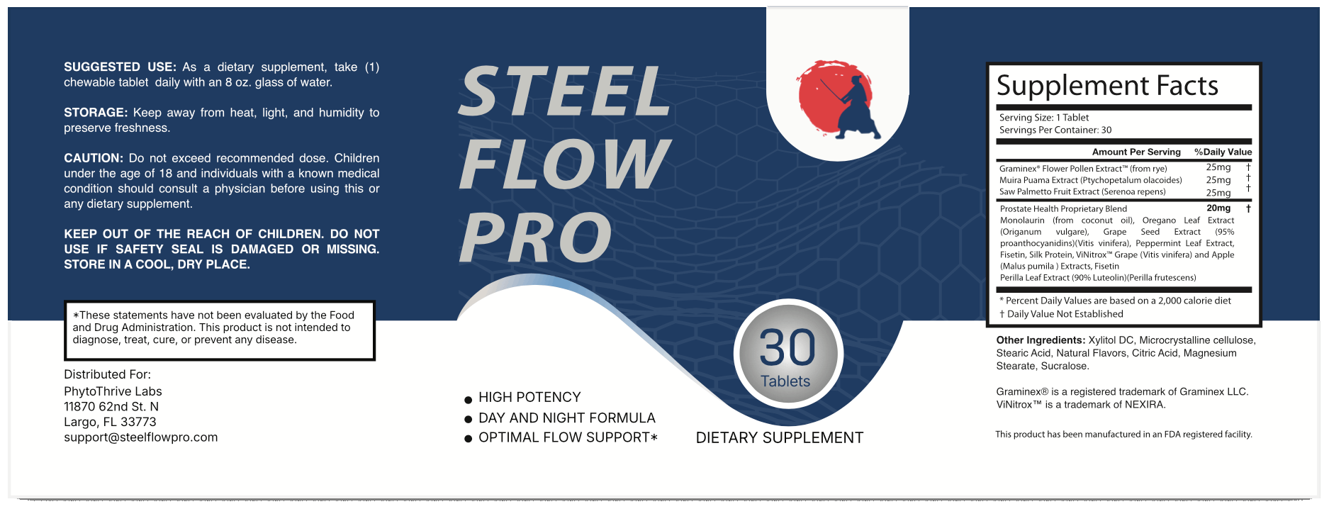 To view the full list of ingredients of the Steel Flow Pro, please check the product label below.